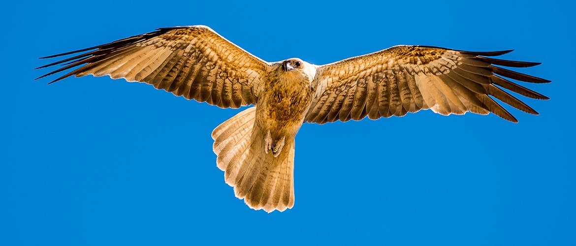 Eighteen birds of prey species have been observed on K’gari. One of the largest of these raptors is the white-bellied sea eagle (Haliaeetus leucogaster) which has a wingspan of two metres or more.