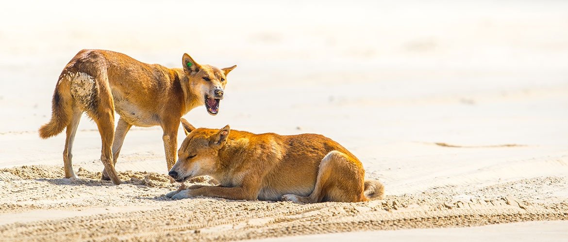 The dingoes of K’gari are one of the purest strains of dingo surviving in Australia today. Dingoes (Canis lupus dingo) are thought to have been introduced to Australia between 3,000-8,000 years ago.
