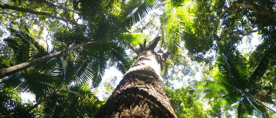 Rainforests grow on sand dunes at the world's highest elevation, more than 200 metres. Subtropical rainforests can be found in the centre of the island in the moist gullies. These communities have a thick canopy of leaves allowing minimal light to reach the forest floor. This causes the trees to grow tall and straight to reach the sunlight, making the trees suitable for logging. Kauri pine and the piccabeen palm are common species found in the rainforests.